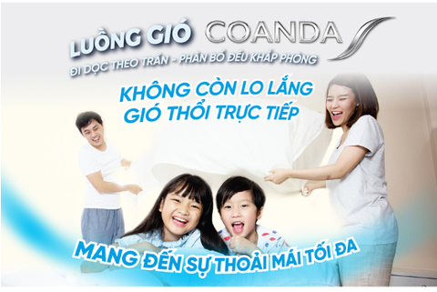 Luồng gió độc đáo Coanda đi dọc theo trần nhà, phân bổ không khí tươi mát đều khắp phòng, tránh gió lùa trực tiếp vào cơ thể, giúp mang lại cảm giác thoải mái tối đa.