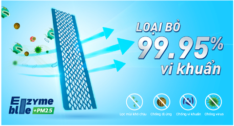 | Lọc bụi, kháng khuẩn, khử mùi: | Phin lọc Enzyme Blue kết hợp PM2.5 |