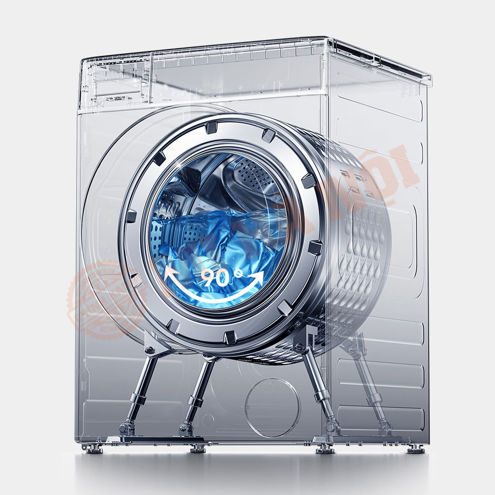 Bên cạnh đấy động cơ truyền động trực tiếp điều khiển chính xác tốc độ quay, bốn bộ giảm xóc hoạt động trơn tru, được trang bị chip và thuật toán thông minh để đảm bảo xi lanh bên trong dao động nhẹ trong phạm vi 90°, giúp các loại vải mỏng manh như lụa được làm sạch tối ưu.